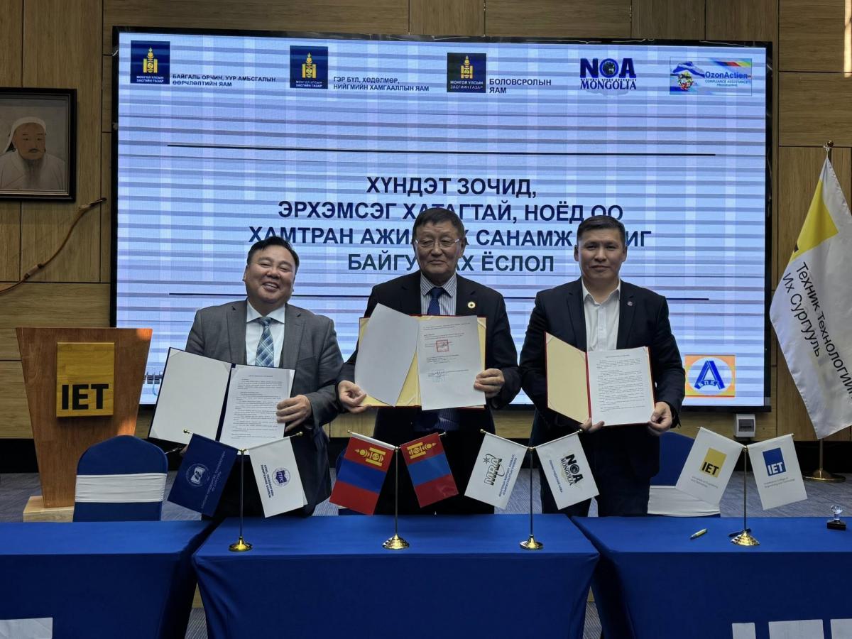 Байгаль орчин, уур амьсгалын өөрчлөлтийн яамны дэргэдэх Озоны үндэсний алба (ОҮА)-наас “Гидрохлорфтортнүүрстөрөгч (ГХФН/HCFC) бодисыг үе шаттай бууруулах менежментийн хөтөлбөр (HPMP)”-ийн хүрээнд “Хүйтэн сүлжээний мах боловсруулах, хүнс боловсруулах салбарын чадавхийг бэхжүүлэх, үнэлгээний тогтолцоо нэвтрүүлэх” сэдэвт арга хэмжээг 2026 оны 01 дүгээр сарын 28-ны өдөр зохион байгууллаа. Тус арга хэмжээ нь HPMP-ийн II үе шатыг хэрэгжүүлэх үйл ажиллагааны төлөвлөгөөг боловсруулах судалгааны үр дүн, мөн I үе шатны хэрэгжилтээс гарсан сургамжид үндэслэн зохион байгуулагдсан юм. Судалгаагаар хоол, хүнс боловсруулах салбарын хөргөлттэй агуулахад хэрэглэгдэж буй хөргөх бодисын хэрэглээ өндөр, засвар үйлчилгээний сайн туршлага, зөв дадлын талаарх мэдлэг, мэдээлэл хангалтгүй байгааг тогтоосон байна. Үүний зэрэгцээ дэлхийн дулааралд нөлөөлөх чадвар (ДДНЧ) багатай орлуулах технологи аль хэдийн нэвтэрч, цаашид Монгол Улсын зах зээлд байгальд ээлтэй байгалийн хөргөх бодис (пропан, изо-бутан, аммиак, нүүрсхүчлийн хий зэрэг)-т суурилсан хөргөлтийн тоног төхөөрөмжийн хэрэглээ нэмэгдэх хандлагатай байгааг онцоллоо. Арга хэмжээний хүрээнд дараах илтгэл, танилцуулгууд хийгдэв. Үүнд: • Озоны үе давхарга, байгаль орчныг хамгаалах асуудал сэдвээр профессор Ц.Адъяасүрэн илтгэл тавив. • Озон задалдаг бодисыг бууруулах Монгол Улсын хүчин чармайлт болон “HCFC бодисыг үе шаттай бууруулах менежментийн хөтөлбөр (HPMP)”-ийн танилцуулгыг ОҮА-ны ахлах мэргэжилтэн, хөтөлбөрийн зохицуулагч Д.Дуламсүрэн хийв. • Хөргөлт, агааржуулалтын системийн засварчин, техникч мэргэжлийн МБС болон ТБОС-ын сургалтын хөтөлбөрийн өнөөгийн байдал, ашиглах аргачлалын талаар сургалтын хөтөлбөрийн зөвлөх Ж.Мөнхзул, ХҮТИС-ийн дэд профессор П.Алтанцэцэг нар танилцууллаа. • Чадамжид суурилсан сургалт, үнэлгээ: Олон улсын туршлага ба Монгол Улсын өнөөгийн байдал сэдвээр хэлэлцүүлэг өрнөв. Мөн арга хэмжээний үеэр хамтран ажиллах санамж бичиг байгуулах ёслолын ажиллагаа болж, ХТПК, ХҮТИС-ийн ректор Б.Бат-Эрдэнэ, ОҮА болон МХХАХ-тай хамтран ажиллах санамж бичигт гарын үсэг зурлаа. Тус арга хэмжээг дэмжин ХТПК, ХҮТИС-ийн ректор Б.Бат-Эрдэнэ, ХТПК-ийн сургалтын менежер Ж.Бат-Амгалан, ХҮТИС-ийн дэд профессор П.Алтанцэцэг нар оролцсон байна. Үйл ажиллагааны хүрээнд БОУАӨЯ-ны ОҮА-ны санаачилгаар озоны үе давхарга, байгаль орчныг хамгаалах, орлуулах хөргөх бодисын технологи, засвар үйлчилгээний зөв дадлыг тусгасан 1.5 жилийн хугацаатай сайжруулсан ТБОС-ын сургалтын хөтөлбөрийг ХТПК-ийн Сургалтын албанд албан ёсоор хүлээлгэн өглөө.