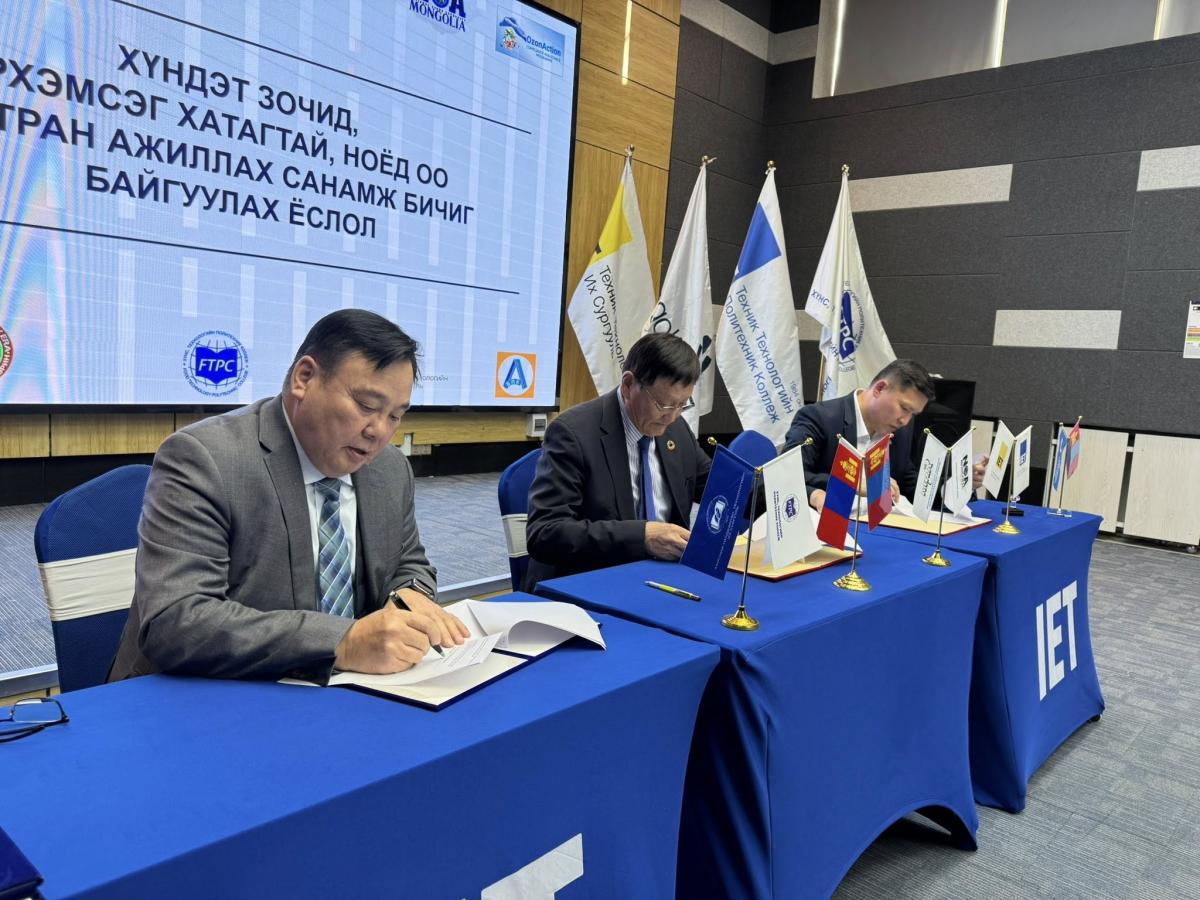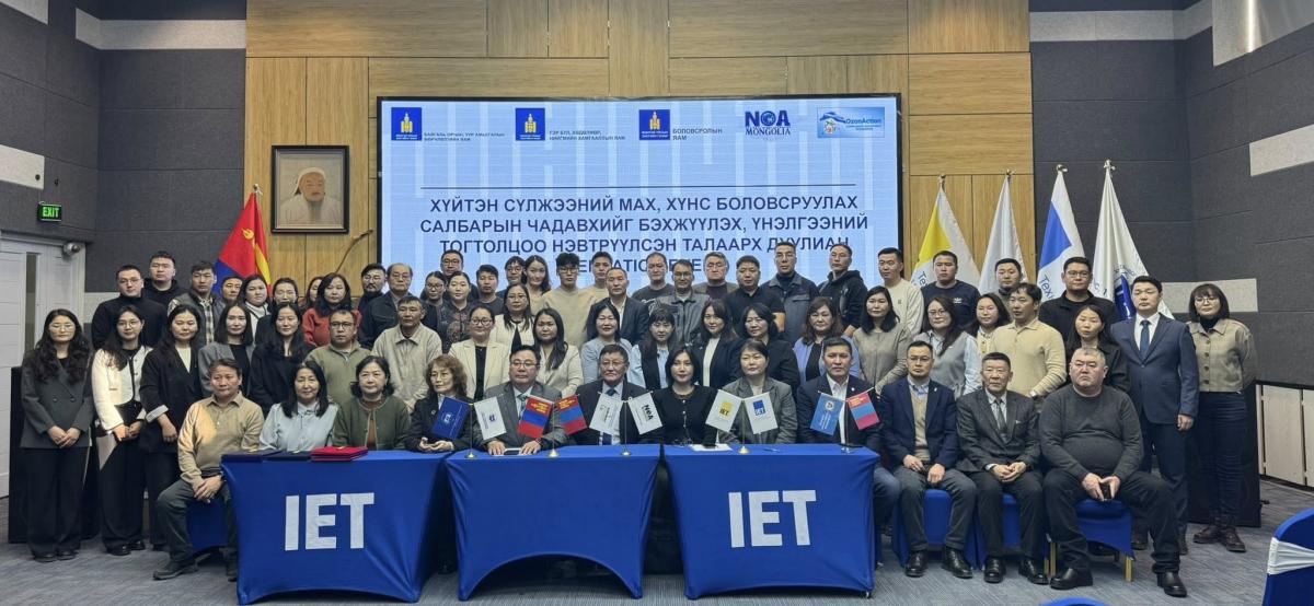 Байгаль орчин, уур амьсгалын өөрчлөлтийн яамны дэргэдэх Озоны үндэсний алба (ОҮА)-наас “Гидрохлорфтортнүүрстөрөгч (ГХФН/HCFC) бодисыг үе шаттай бууруулах менежментийн хөтөлбөр (HPMP)”-ийн хүрээнд “Хүйтэн сүлжээний мах боловсруулах, хүнс боловсруулах салбарын чадавхийг бэхжүүлэх, үнэлгээний тогтолцоо нэвтрүүлэх” сэдэвт арга хэмжээг 2026 оны 01 дүгээр сарын 28-ны өдөр зохион байгууллаа. Тус арга хэмжээ нь HPMP-ийн II үе шатыг хэрэгжүүлэх үйл ажиллагааны төлөвлөгөөг боловсруулах судалгааны үр дүн, мөн I үе шатны хэрэгжилтээс гарсан сургамжид үндэслэн зохион байгуулагдсан юм. Судалгаагаар хоол, хүнс боловсруулах салбарын хөргөлттэй агуулахад хэрэглэгдэж буй хөргөх бодисын хэрэглээ өндөр, засвар үйлчилгээний сайн туршлага, зөв дадлын талаарх мэдлэг, мэдээлэл хангалтгүй байгааг тогтоосон байна. Үүний зэрэгцээ дэлхийн дулааралд нөлөөлөх чадвар (ДДНЧ) багатай орлуулах технологи аль хэдийн нэвтэрч, цаашид Монгол Улсын зах зээлд байгальд ээлтэй байгалийн хөргөх бодис (пропан, изо-бутан, аммиак, нүүрсхүчлийн хий зэрэг)-т суурилсан хөргөлтийн тоног төхөөрөмжийн хэрэглээ нэмэгдэх хандлагатай байгааг онцоллоо. Арга хэмжээний хүрээнд дараах илтгэл, танилцуулгууд хийгдэв. Үүнд: • Озоны үе давхарга, байгаль орчныг хамгаалах асуудал сэдвээр профессор Ц.Адъяасүрэн илтгэл тавив. • Озон задалдаг бодисыг бууруулах Монгол Улсын хүчин чармайлт болон “HCFC бодисыг үе шаттай бууруулах менежментийн хөтөлбөр (HPMP)”-ийн танилцуулгыг ОҮА-ны ахлах мэргэжилтэн, хөтөлбөрийн зохицуулагч Д.Дуламсүрэн хийв. • Хөргөлт, агааржуулалтын системийн засварчин, техникч мэргэжлийн МБС болон ТБОС-ын сургалтын хөтөлбөрийн өнөөгийн байдал, ашиглах аргачлалын талаар сургалтын хөтөлбөрийн зөвлөх Ж.Мөнхзул, ХҮТИС-ийн дэд профессор П.Алтанцэцэг нар танилцууллаа. • Чадамжид суурилсан сургалт, үнэлгээ: Олон улсын туршлага ба Монгол Улсын өнөөгийн байдал сэдвээр хэлэлцүүлэг өрнөв. Мөн арга хэмжээний үеэр хамтран ажиллах санамж бичиг байгуулах ёслолын ажиллагаа болж, ХТПК, ХҮТИС-ийн ректор Б.Бат-Эрдэнэ, ОҮА болон МХХАХ-тай хамтран ажиллах санамж бичигт гарын үсэг зурлаа. Тус арга хэмжээг дэмжин ХТПК, ХҮТИС-ийн ректор Б.Бат-Эрдэнэ, ХТПК-ийн сургалтын менежер Ж.Бат-Амгалан, ХҮТИС-ийн дэд профессор П.Алтанцэцэг нар оролцсон байна. Үйл ажиллагааны хүрээнд БОУАӨЯ-ны ОҮА-ны санаачилгаар озоны үе давхарга, байгаль орчныг хамгаалах, орлуулах хөргөх бодисын технологи, засвар үйлчилгээний зөв дадлыг тусгасан 1.5 жилийн хугацаатай сайжруулсан ТБОС-ын сургалтын хөтөлбөрийг ХТПК-ийн Сургалтын албанд албан ёсоор хүлээлгэн өглөө.