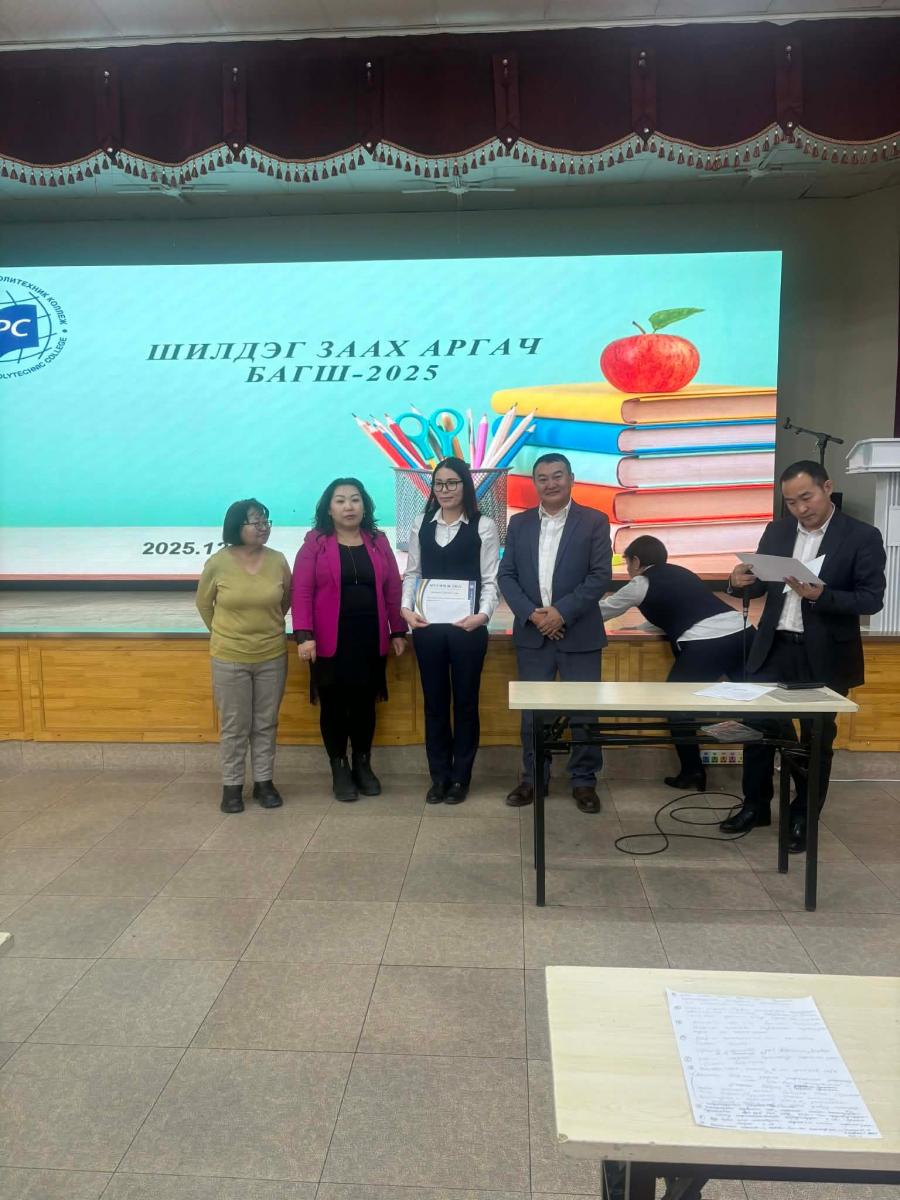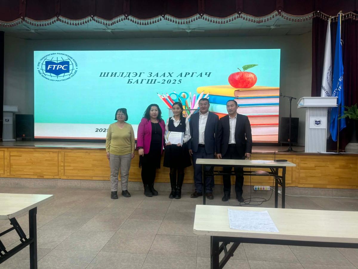 Хүнс, технологийн политехник коллежийн багш нарын заах арга зүй, мэргэжлийн ур чадварыг дээшлүүлэх, суралцагч төвтэй, шинэлэг сургалтын арга технологийг түгээн дэлгэрүүлэх зорилгоор “Шилдэг заах аргач багш – 2025” заах ур чадварын уралдааныг 2025 оны 12 дугаар сарын 19-ний өдөр амжилттай зохион байгууллаа. Тус уралдаанд 4 тэнхимийн 8 багш оролцож, • заах арга зүй • сургалтын хэрэглэгдэхүүн • дижитал шийдэл • суралцагч төвтэй хандлага зэрэг шалгуур үзүүлэлтээр мэдлэг, ур чадвараа сорин өрсөлдлөө.